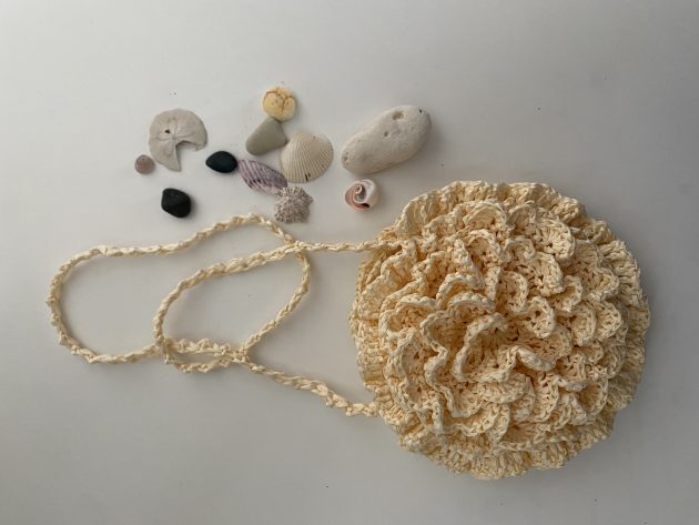 大輪の花のような【ボタニカル bon bon bag】を、一緒に編んでみませんか?くるくると一筆書きのように編み進める、楽しいバッグです。お色は〈白〉または〈黒〉からお選びいただけます。素材は軽やかなペーパーヤーン。